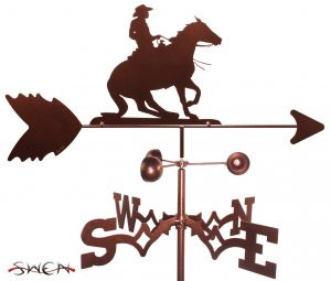 This is a real working weathervane. They are all made with pride by a small family business located in the US. The weathervane is made of a strong 16 gauge steel. The top of the weathervane pivots on a strong stainless steel pin. The wind-cups have a sealed ball bearing that will spin with the slightest breeze. The entire weathervane is covered with copper vein colored powder coat paint. Baked on Paint.
