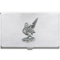 This business card case is constructed of stainless steel featuring a fine pewter decorative casting. The hinged case is perfect for carrying your cards in a neat and impressive manner. Assembled in USA.