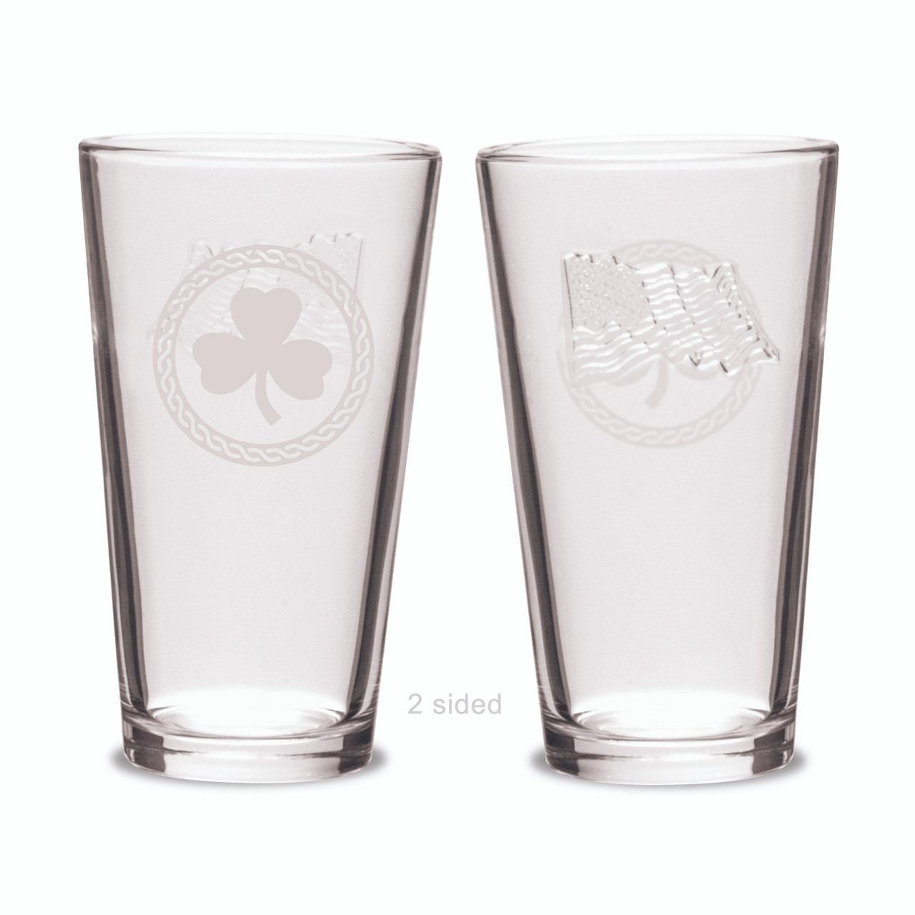 Shamrock Celtic Logo 16 oz Crystal American Flag Glass