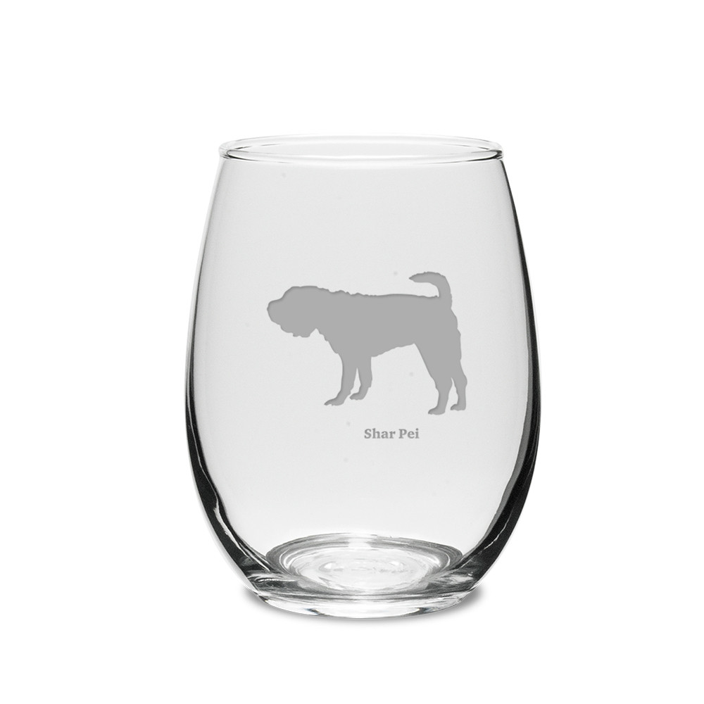 Click the button below to add the SharPei Deep Etched 15 oz Stemless White Wine Glass to your wish list.