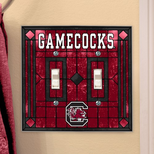 Lighten up your room with this South Carolina Gamecocks Art Glass Double Switch Plate Cover. This Art Glass Light Switch Cover is great for any fan. It is officially licensed and features your favorite team colors. Fits over almost all double light switches. Measures 5.25" Tall x 5.5" Wide.