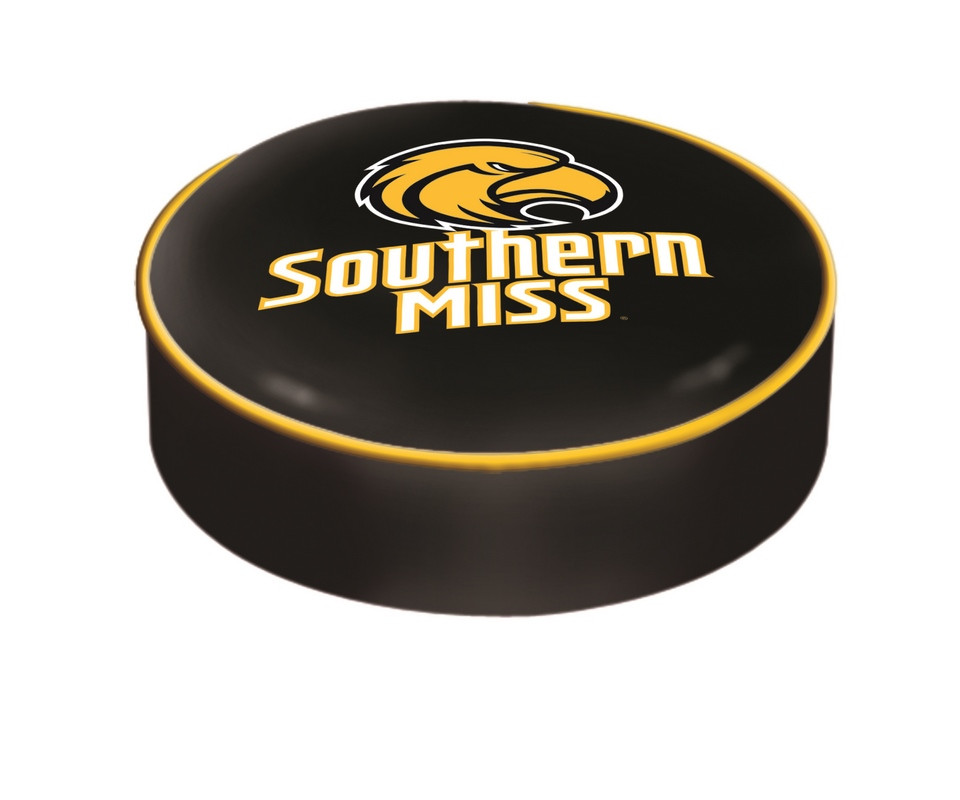 This Southern Miss bar stool cushion cover is hand-made in the USA by Covers by HBS; using the finest commercial grade vinyl and utilizing a step-by-step screen print process to give you the most detailed logo possible. This cover slips over your existing cushion, held in place by an elastic band. The vinyl cover will fit 3.5 inch x 14 inch diameter seats. This product is Officially Licensed. Make those old stools new again while supporting your team with the help of Covers by HBS!
