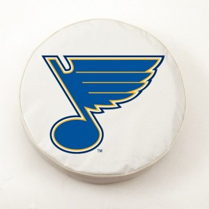 These great St. Louis Blues small white tire covers are made with a heavy gauge vinyl that has an elastic tie down for an easy fit. It is a universal fit tire cover that fits tire diameter up to 28 ? x 8. It's also water resistant, and wipes clean with a damp cloth.