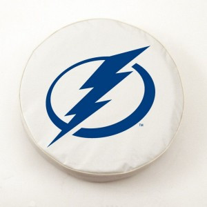 These great Tampa Bay Lightning small white tire covers are made with a heavy gauge vinyl that has an elastic tie down for an easy fit. It is a universal fit tire cover that fits tire diameter up to 28 ? x 8. It's also water resistant, and wipes clean with a damp cloth.