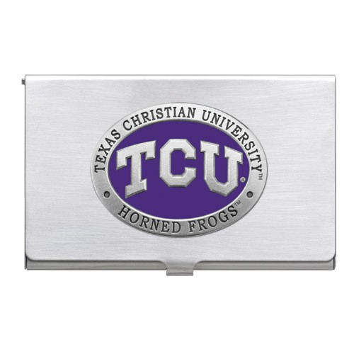 Carry your business cards with your favorite team's logo. This TCU Horned Frogs Business Card Case (Set of 2) is officially licensed with a colored pewter logo. Makes a great gift!