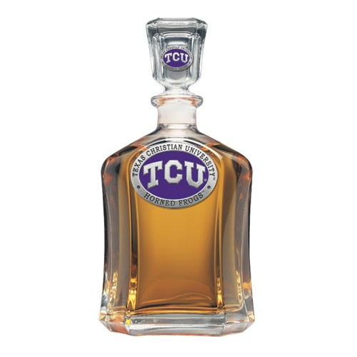 This high-quality 24 oz TCU Horned Frogs Capitol Decanter is officially licensed and features a colored pewter logo of your favorite team. This unique product makes a great gift! Made in the USA.