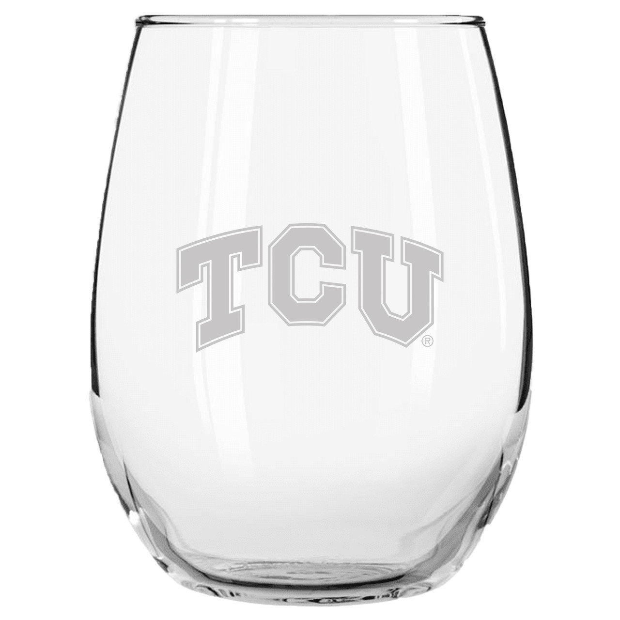 TCU Horned Frogs Etched 15 oz Stemless Wine Glass Set of 2 Tumbler