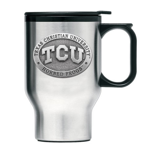 Officially Licensed TCU Horned Frogs Stainless Steel 14 oz Travel Mug Crafted with a Pewter Logo