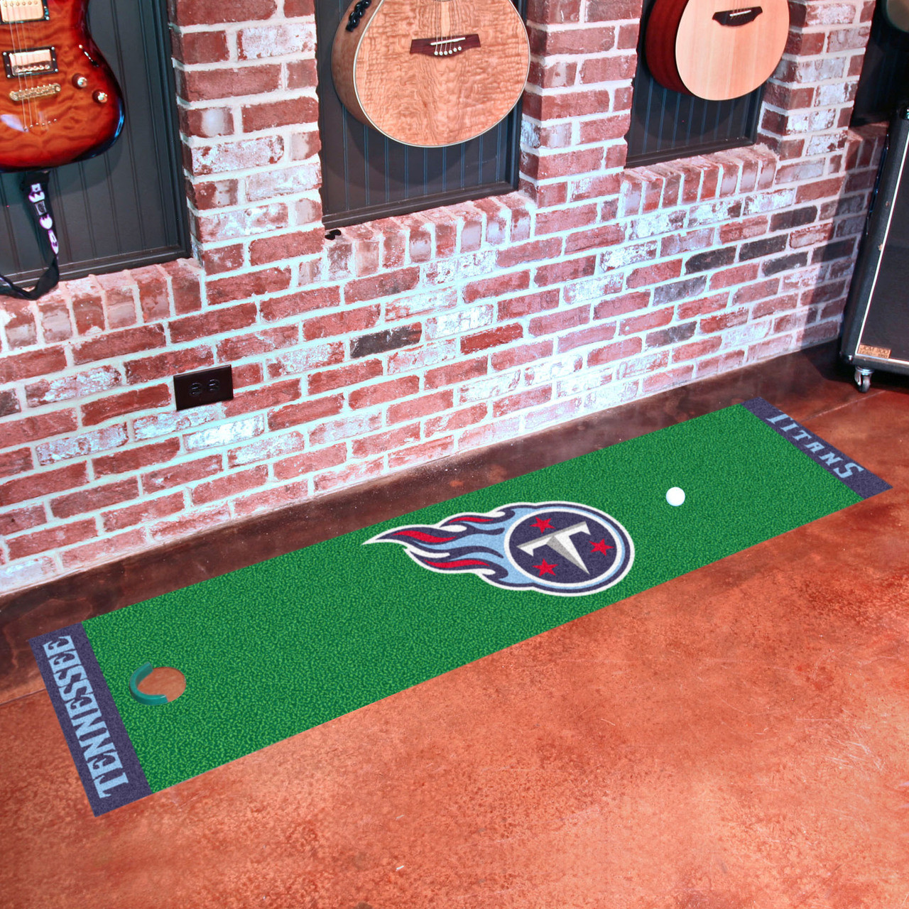 Officially licensed putting green runner. Realistic putting surface. 11 on the Stimp meter. Chromojet-printed nylon surface with vinyl backing. Can be used as a runner when not practicing. Comes with plastic target and flag.