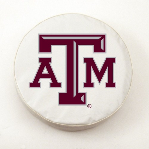 These great Texas A&M Aggies large white tire covers are made with a heavy gauge vinyl that has an elastic tie down for an easy fit. It is a universal fit tire cover that fits tire diameter up to 31"x11". It's also water resistant, and wipes clean with a damp cloth.
