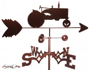This is a real working weathervane. They are all made with pride by a small family business located in the US. The weathervane is made of a strong 16 gauge steel. The top of the weathervane pivots on a strong stainless steel pin. The wind-cups have a sealed ball bearing that will spin with the slightest breeze. The entire weathervane is covered with copper vein colored powder coat paint. Baked on Paint.