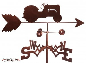 This is a real working weathervane. They are all made with pride by a small family business located in the US. The weathervane is made of a strong 16 gauge steel. The top of the weathervane pivots on a strong stainless steel pin. The wind-cups have a sealed ball bearing that will spin with the slightest breeze. The entire weathervane is covered with copper vein colored powder coat paint. Baked on Paint.