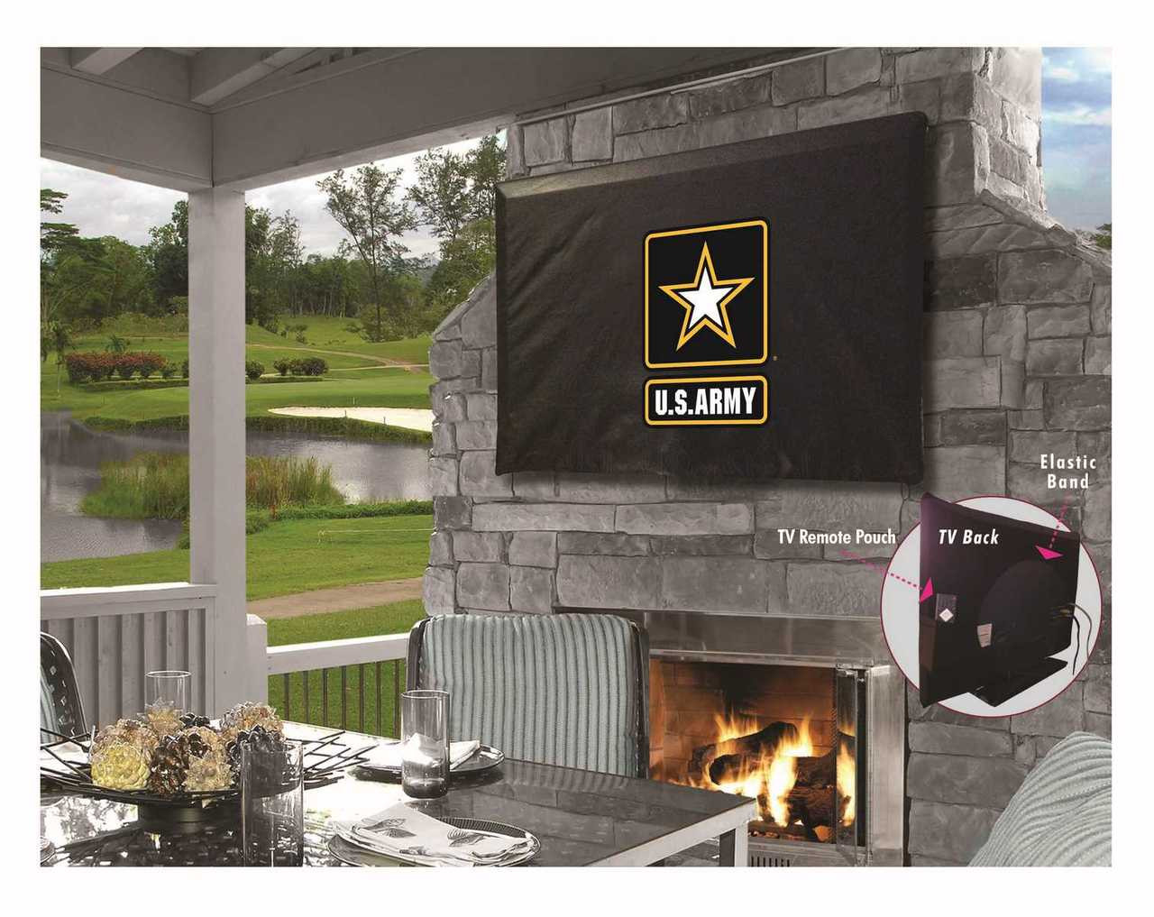 This U.S. Army TV Cover is hand-made in the USA using the finest commercial grade vinyl and utilizing a step-by-step screen print process to give you the most detailed logo possible. UV resistant inks are used to ensure exceptional durability to direct sun exposure. Spandex-like material wraps around the back of the TV, keeping moisture out while allowing heat out and helping to prevent overheating. Back opening allows a fit on any wall mount, and bungee allows cover to be cinched down securely. Cover also contains a pocket for remote control storage. This product is Officially Licensed, so you can show your pride while protecting your TV from the elements of nature. Keep your TV protected and support your team with the help of Covers ! Fits TV sizes 30" to 36".