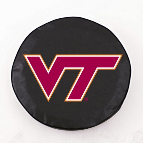 These great Virginia Tech Hokies large black tire covers are made with a heavy gauge vinyl that has an elastic tie down for an easy fit. It is a universal fit tire cover that fits tire diameter up to 31"x11". It's also water resistant, and wipes clean with a damp cloth.