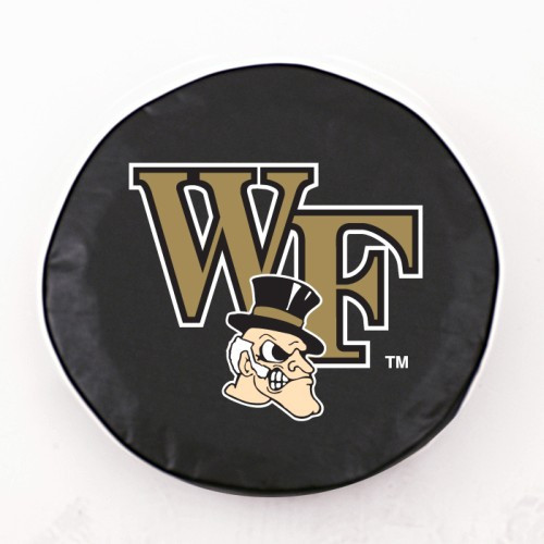 These great Wake Forest Demon Deacons small black tire covers are made with a heavy gauge vinyl that has an elastic tie down for an easy fit. It is a universal fit tire cover that fits tire diameter up to 28 ½ x 8. It's also water resistant, and wipes clean with a damp cloth.