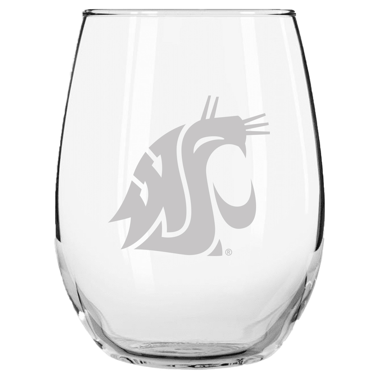 Washington State Cougars Etched 15 oz Stemless Wine Glass Set of 2 Tumbler