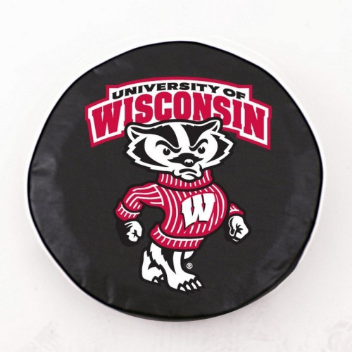 These great Wisconsin Badgers small black tire covers are made with a heavy gauge vinyl that has an elastic tie down for an easy fit. It is a universal fit tire cover that fits tire diameter up to 28 ? x 8. It's also water resistant, and wipes clean with a damp cloth.
