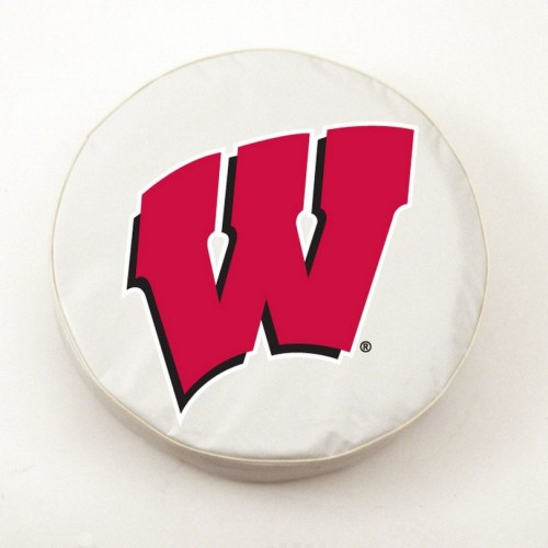 These great Wisconsin Badgers logo large white tire covers are made with a heavy gauge vinyl that has an elastic tie down for an easy fit. It is a universal fit tire cover that fits tire diameter up to 31"x11". It's also water resistant, and wipes clean with a damp cloth.